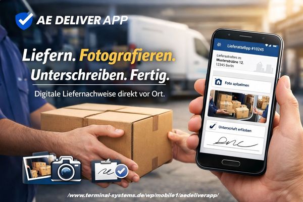 Mit AE Deliver App kannst du Lieferungen direkt vor Ort mit deinem Android-Smartphone erfassen.