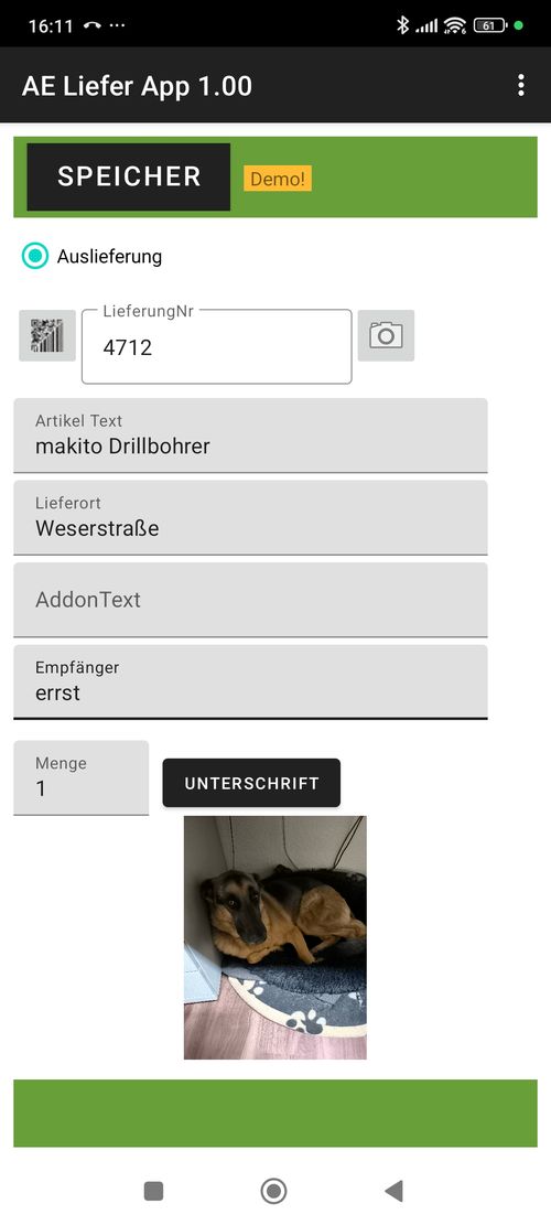 Diese App ist für diejenigen, die Teile an Baustellen oder Kunden ausliefern möchten. Dabei können die Teile fotografiert und der Empfang durch eine Unterschrift bestätigt werden.