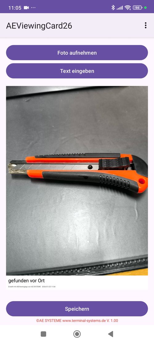 Mit AEPhotoCard fügst du Fotos direkt Textinformationen hinzu – ideal für einfache und nachvollziehbare Dokumentation.